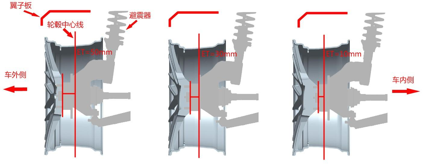 - 轮毂ET值过小:轮毂凸出车身容易与翼子板干涉。