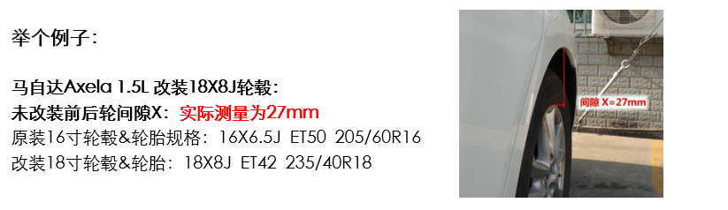 3)最后,我们再举个改装栗子验证一下我们改装轮毂的偏距是否正确: